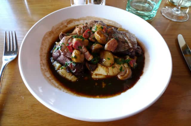 Är man vegetarian kan det vara lite svårt att hitta en restaurang, men inte omöjligt. De flesta menyer innehåller rätter med fisk eller kött. Fransmännen är stolta över deras rätter med delar av djuren, som vi inte riktigt är vana vid hemma i Sverige, ”testicules de mounton” tillexempel. Några traditionella rätter som kan vara kul att testa under sin vistelse är moules frites, ratatouille, Coq Au Vin och den söta efterrätten crepes.