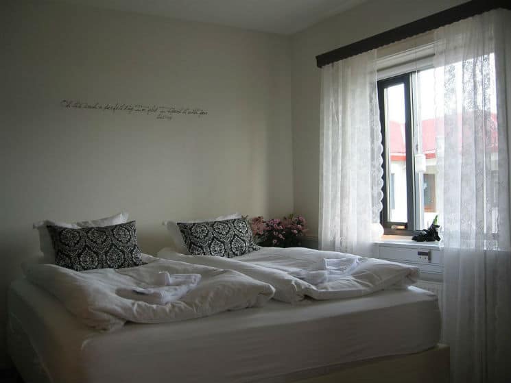 Detta charmiga lilla hotell ligger nära flygplatsen och passar perfekt för övernattning. I närheten ligger Akureyris botaniska trädgård, Hlíðarfjall och Jon Sveinsson-museet. Hotellet har en restaurang, bar, gratis frukost, möjlighet till skidåkning och en bubbelpool. Hotellrummen är mycket fräscha och har tillgång till Wi-Fi. Badrummen delas av gästerna, men städas ofta för att hålla en bra standard.