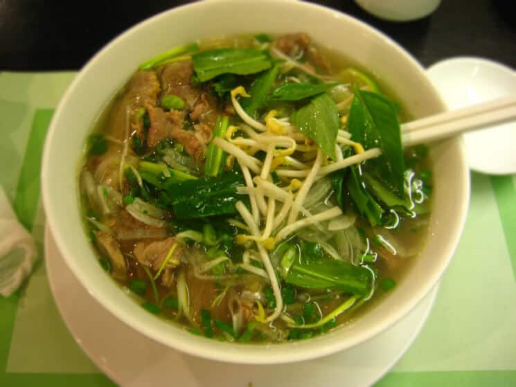 Vietnams nationalrätt Pho är en nudelsoppa som ofta äts till frukost. Rätten består av köttbuljong, lök, kött eller kyckling och nudlar. Soppan äts med pinnar så den som inte är van att äta med pinnar bör överväga att fuska med bestick.